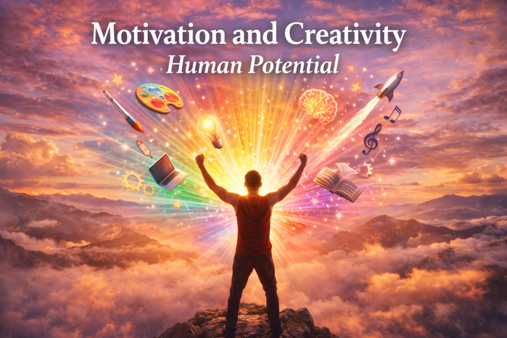 In the end motivation and creativity go hand in hand. Curiosity is what starts the process. Passion is what keeps it going. Motivation is what helps people get past the times.. When people work together they can do even more. When motivation and creativity work together they can help people do things and make their dreams come true. Motivation and creativity unlock human. Shape the future of creativity.
