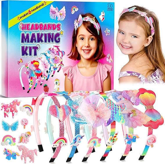 Pourbibi Unicorn Headband Making Kit for Girls Age 3+, Creative Craft Kits for Kids, DIY Hairbands & Hair Accessories Toys Set – Birthday Presents & Gifts for Girls Age 3-8 Years Old